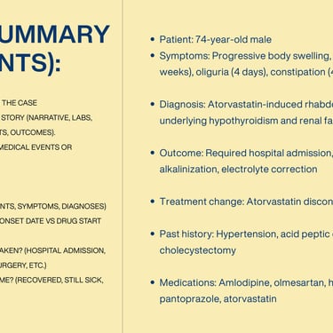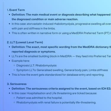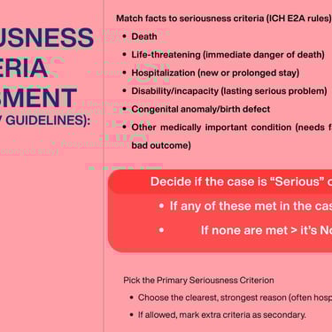 Agenda (STEPS) : Case Summary (Key Points): Seriousness Criteria Assessment (per ICH E2A & PV guidelines): Final Seriousness Assessment ICSR Seriousness Term to Select Expected MedDRA terms